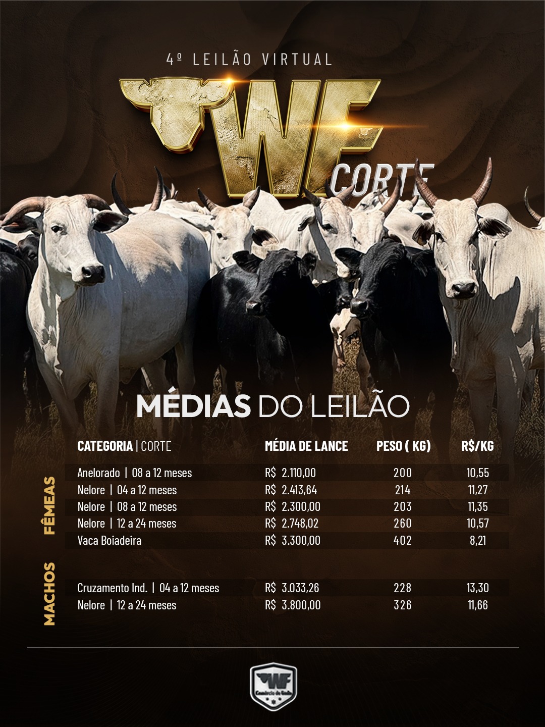 | NELORE | 12 A 24 MESES | 260 | R$ 2.748,02 | R$ 10,57 |