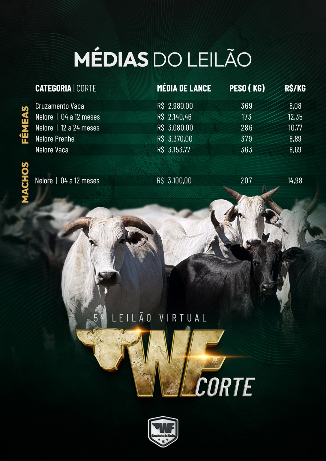 | NELORE | 04 A 12 MESES | 173 | R$ 2.140,46 | R$ 12,37 |